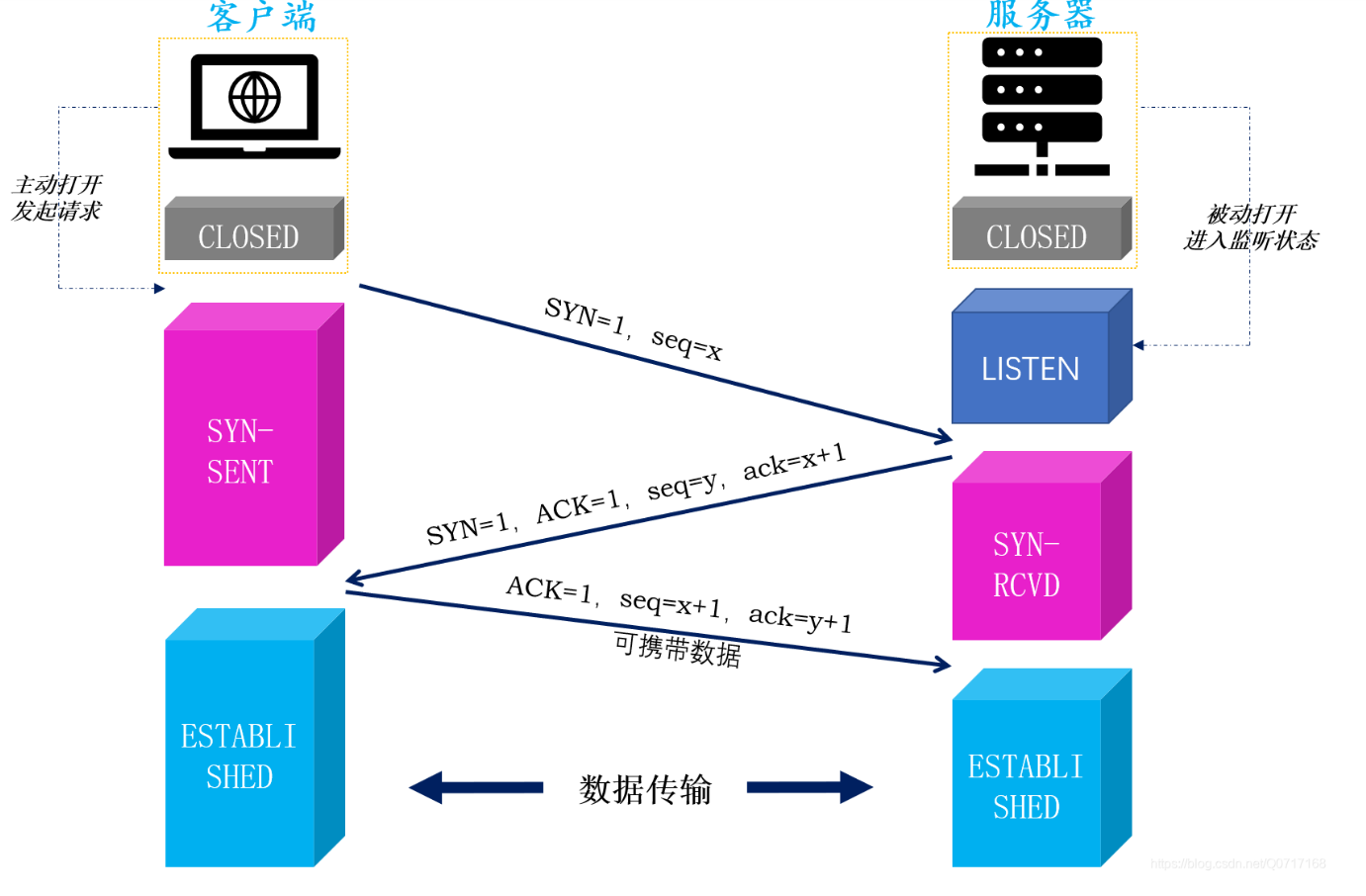 三次握手是tcp建立连接的过程,确保连接的可靠性,主要是发同步序列号SYN,和ACK确认